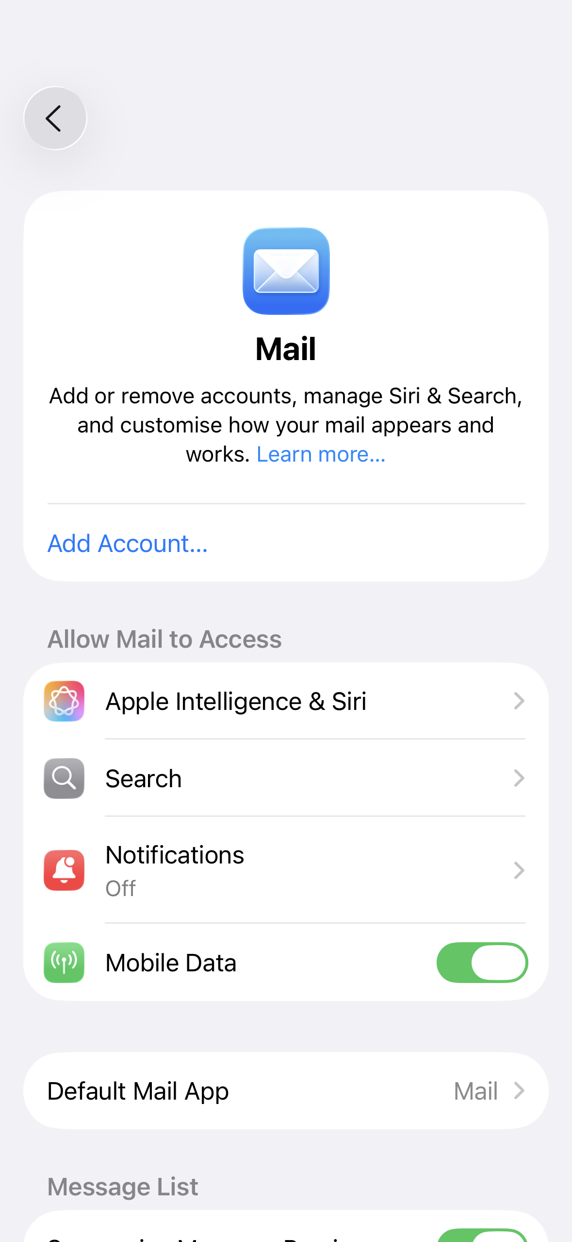 8. Tap on Mail Account