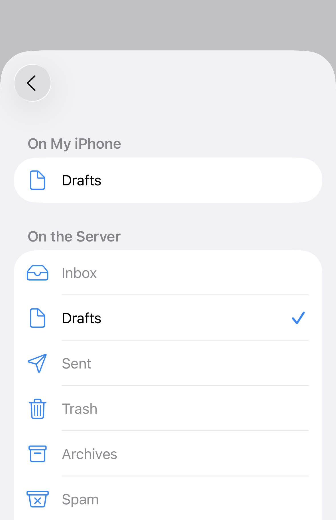 10. Tap Drafts from the On The Server section (A Tick will appear next to the folder as per the image below).