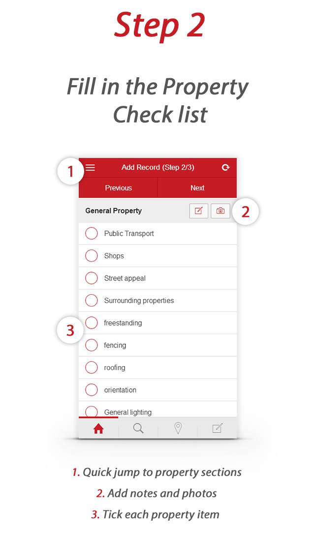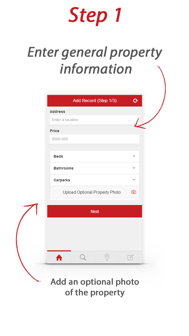 Users can add notes and photos to accompany their property research at any time, and at the conclusion of their research, give an overall percentage rating of their final impression of the property on the application's rating slider.